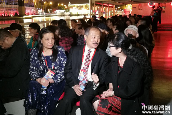 與會嘉賓在海河泛舟,交談光影秀印象。(中國臺灣網 張露露 攝)