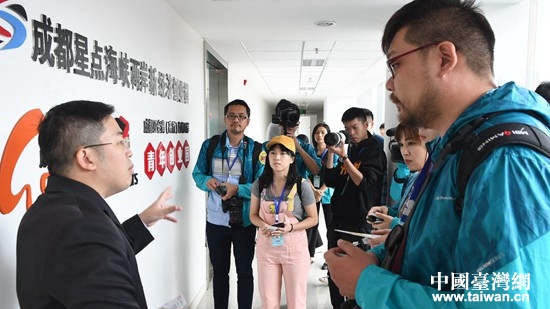 采訪成都星點(高新)海峽兩岸新經濟青年創業園。(圖片來源:四川省臺辦)