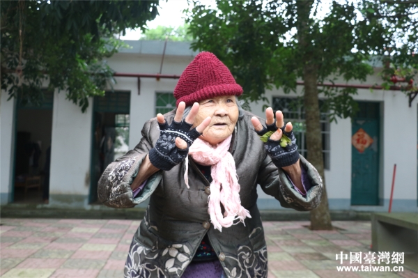 村里104歲高齡的梁秀珍老人拉起記者的手交談。(中國(guó)臺(tái)灣網(wǎng) 李寧 攝)
