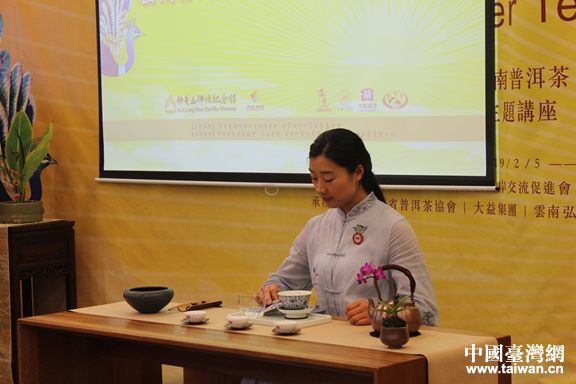 云南茶藝?yán)蠋熣故酒斩铔_泡技藝。(中國臺(tái)灣網(wǎng) 全志強(qiáng) 攝)