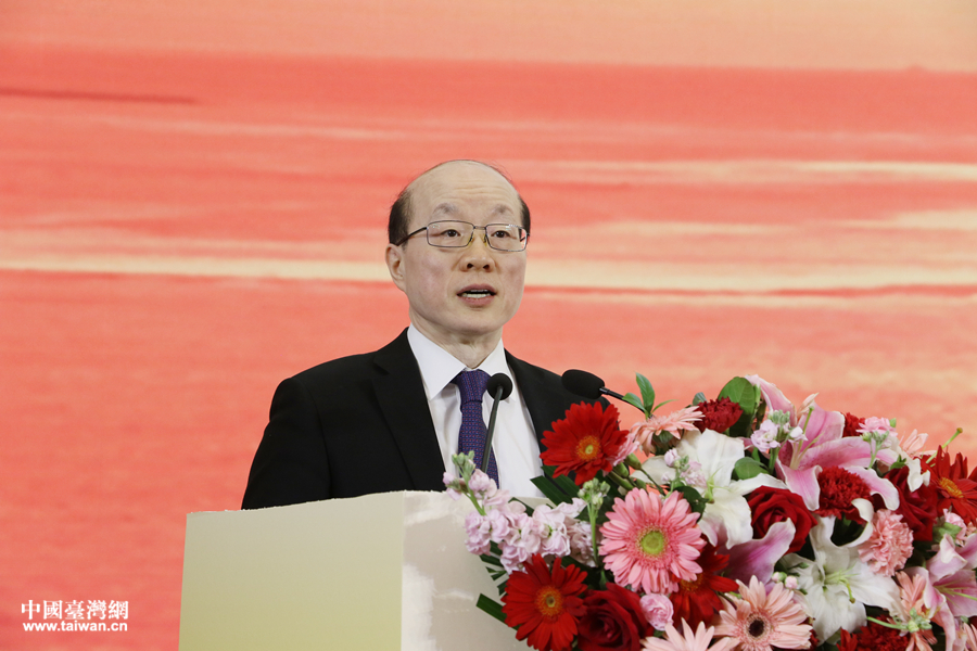 中共中央臺辦、國務院臺辦主任劉結一在2019兩岸青年交流合作北京峰會開幕式上致辭。(中國臺灣網 李寧 攝)