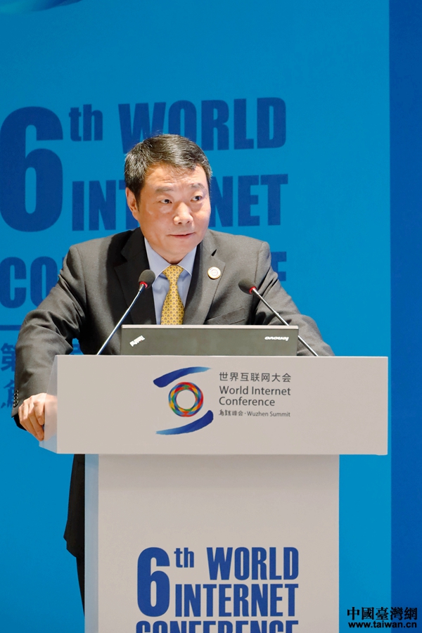 中共中央臺辦、國務院臺辦副主任陳元豐在2019海峽兩岸暨香港、澳門互聯網發展論壇上致辭。(中國臺灣網發)