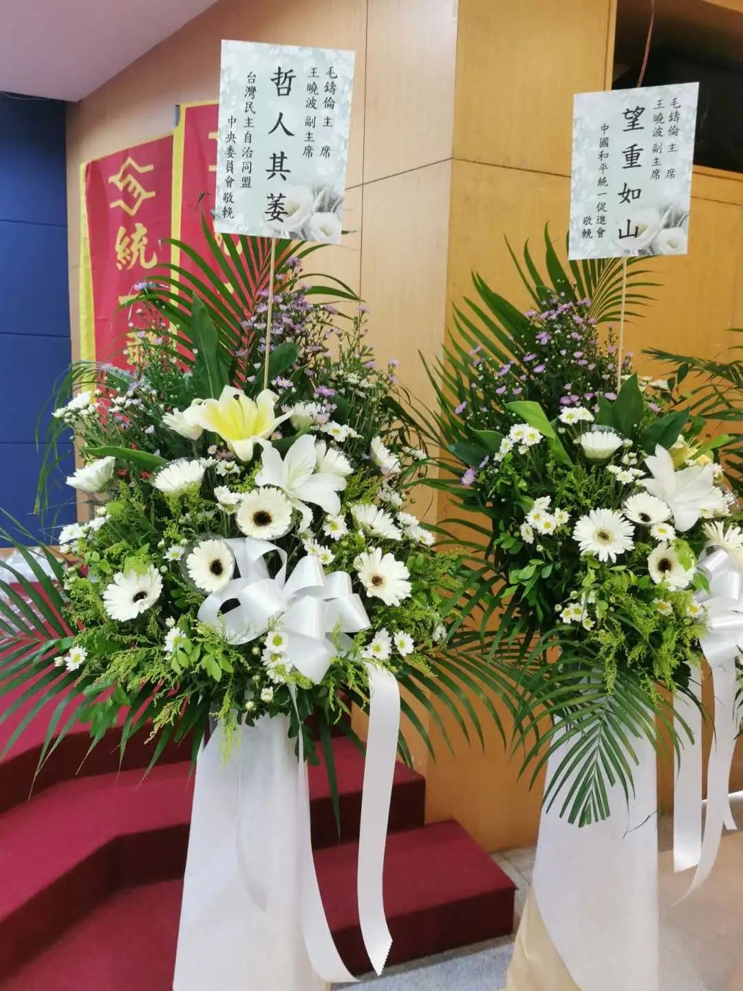 追思會上,臺盟中央敬獻花籃,表達對二位統派好友的悼念。