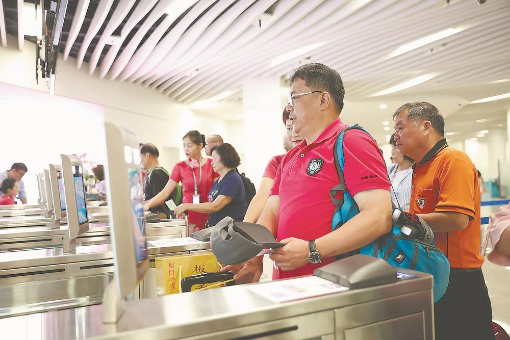 臺胞在廈門五通客運碼頭準備檢票登船。 (攝于2019年6月3日)