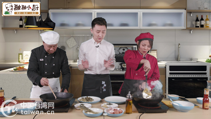 “融融小廚”直播間,兩岸“小廚”現場制作蚵仔煎。(中國臺灣網 發)