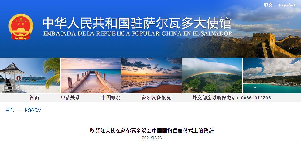 海外網3月26日電據中國駐薩爾瓦多大使館網站消息,歐箭虹大使在薩爾瓦多議會中國國旗置旗儀式上致辭,全文如下: