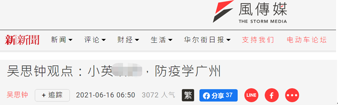 對于廣州成功防控的經驗,臺商吳思鐘看在眼里,他在臺媒“風傳媒”發文向蔡英文喊話:防疫學廣州。
