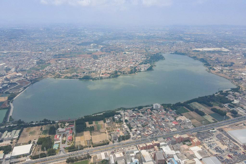 這是福建向金門供水工程取水地——晉江龍湖(2021年4月13日攝,無人機(jī)照片)。新華社發(fā)(賴進(jìn)財(cái) 攝)
