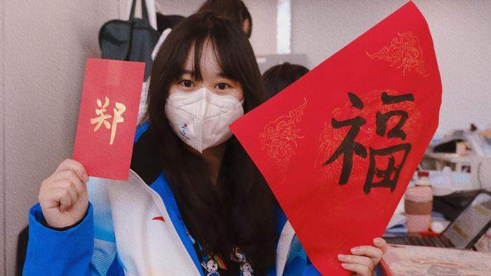 “我們?cè)趫?chǎng)館、駐地掛燈籠、貼對(duì)聯(lián)、寫福字、辦年會(huì),處處充溢著滿滿的幸福感。”鄭昊然說。她和志愿者伙伴們正努力將這份愛心和來自中國(guó)的新春祝福傳遞給海外的運(yùn)動(dòng)員和媒體朋友們,讓他們也體驗(yàn)一把濃情的中國(guó)年味。“每每聽到外國(guó)友人用中文回復(fù)我‘新春快樂’時(shí),我真切感受到滿滿的驚喜和無與倫比的自豪。”