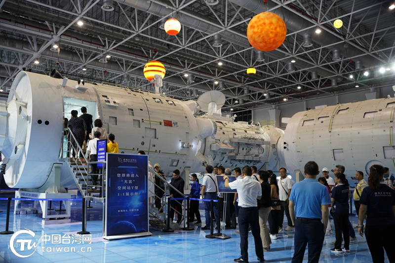 考察團(tuán)的臺商們走進(jìn)1:1“天宮”空間站。(中國臺灣網(wǎng) 王大勇 攝)
