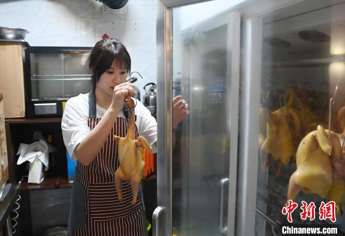 6月13日,林鳳怡將雞放進(jìn)烤箱烤制。中新社記者 蔣雪林 攝