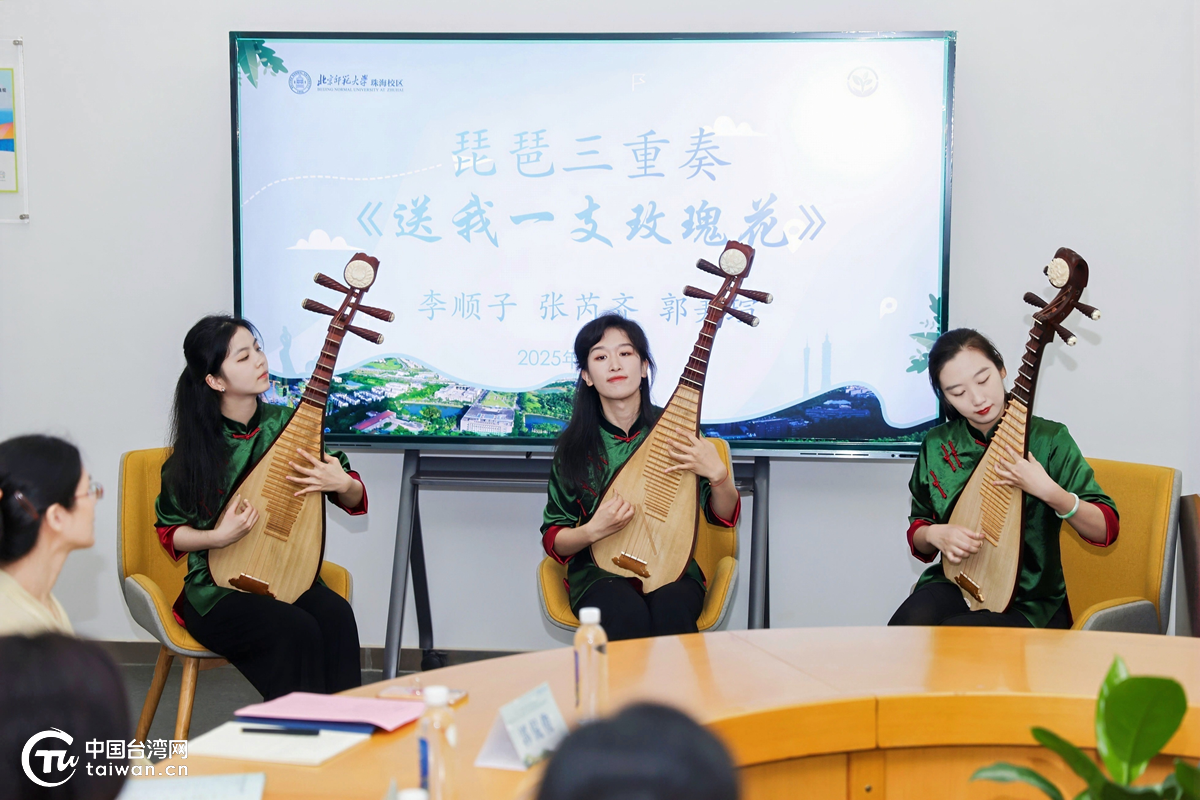 開營現場,北京師范大學百年校史宣傳片以影像形式展現了北師大“學為人師,行為世范”的精神傳承,以及珠海校區在粵港澳大灣區的創新發展實踐。隨后,由北師大學生表演的琵琶三重奏《送我一支玫瑰花》以傳統民樂為媒,通過悠揚的旋律傳遞中華文化魅力,讓臺灣學子在藝術共鳴中感受到大陸文化的包容性與生命力。