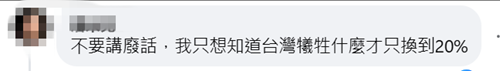 對于這一稅率,許多臺灣民眾表示相當不滿意,多條憤怒留言涌入賴清德臉書。