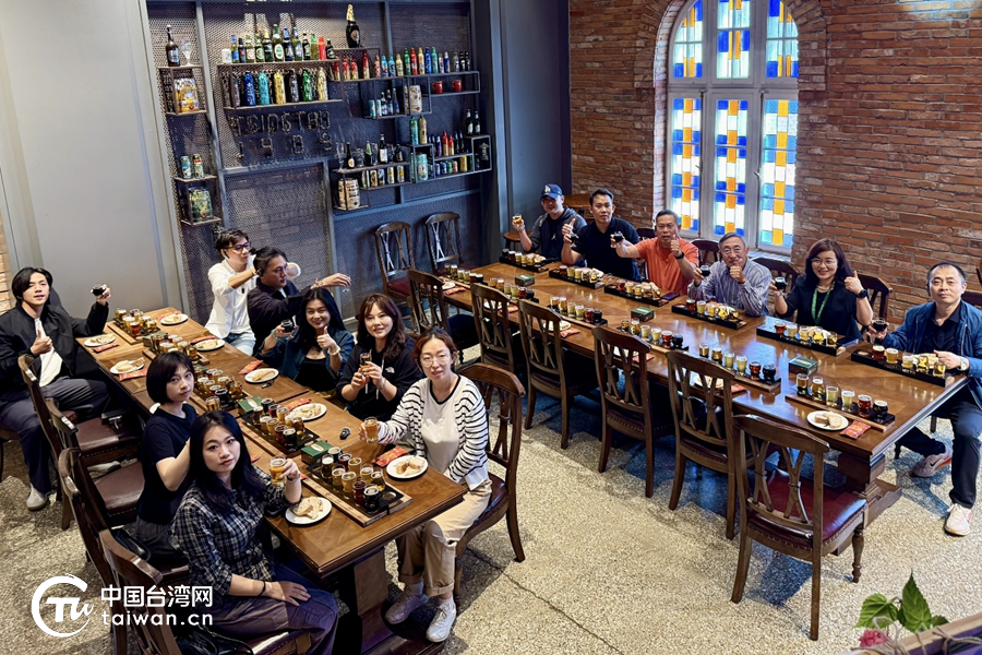 兩岸媒體人共同品鑒青島啤酒。(中國臺灣網記者 郁誠 攝)