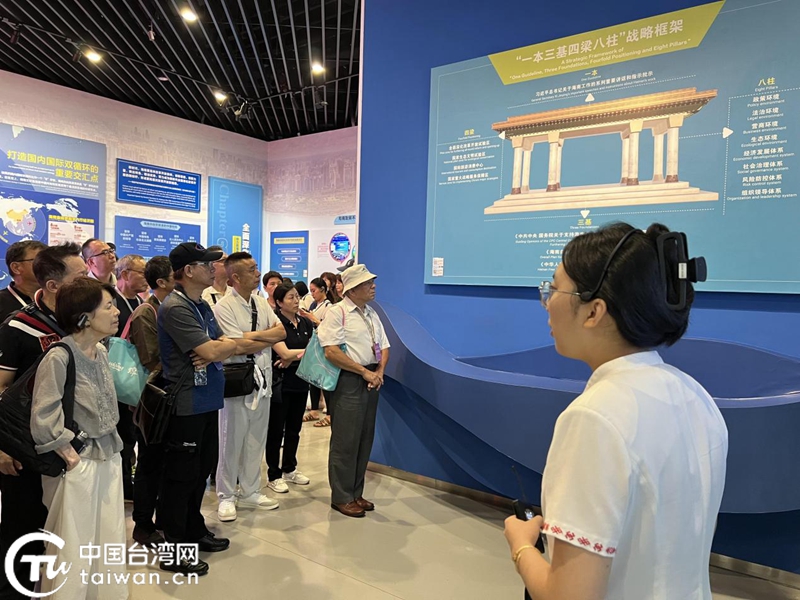 兩岸文旅界人士在海南省史志館參觀自由貿易港建設成果展,全方位了解海南自貿港的建設發展。(中國臺灣網記者 劉琳 攝)