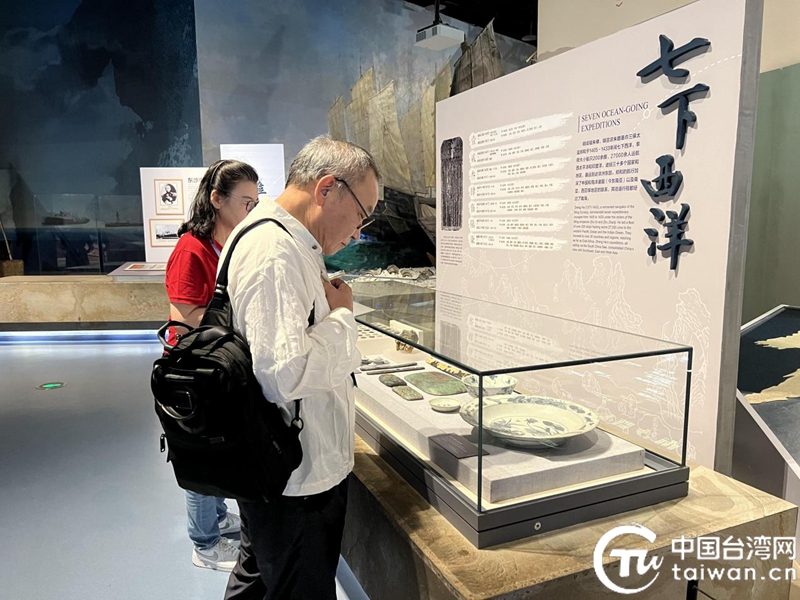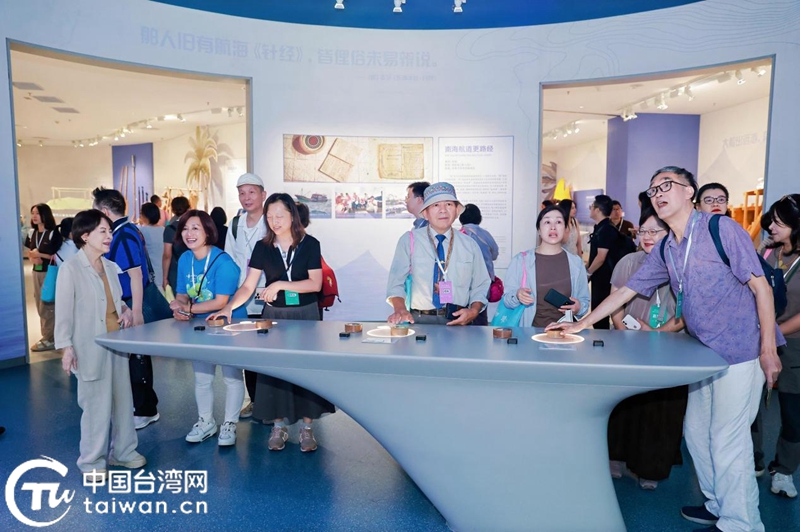 兩岸文旅界人士在中國(海南)南海博物館考察觀看從南海沉船打撈出的水下文物。(中國臺灣網發)