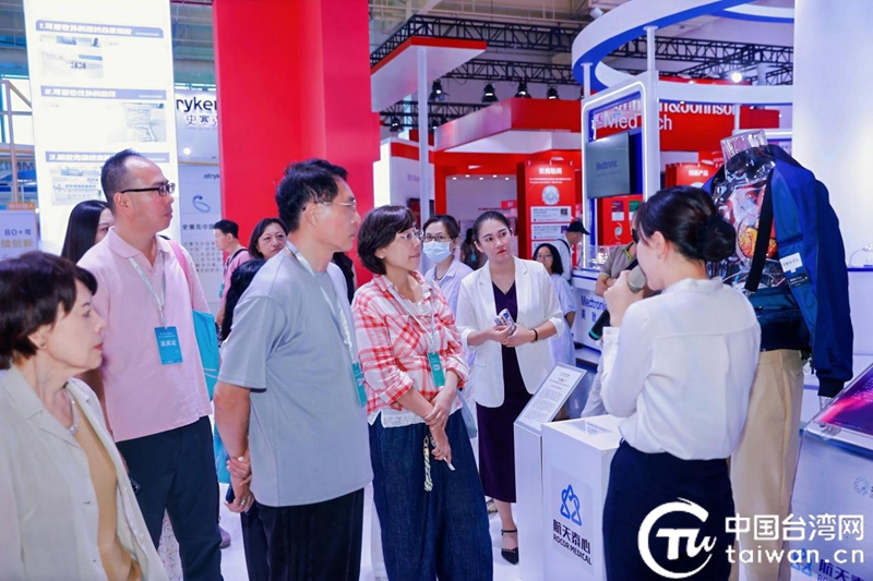 兩岸文旅界人士參觀博鰲樂城永不落幕藥械展,了解博鰲樂城國際醫療先行區的整體擘畫。(中國臺灣網發)
