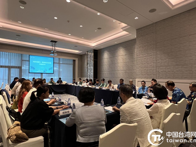 兩岸文旅界人士圍繞非遺傳承保護、瓊臺文化交融進行座談交流。(中國臺灣網記者 劉琳 攝)