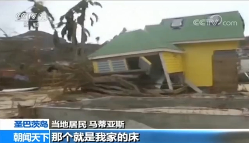 圣巴茨島當(dāng)?shù)鼐用?馬蒂亞斯:這里原來(lái)是我的家,現(xiàn)在什么都沒(méi)有了, 那個(gè)就是我家的床。記者:你家客廳在哪兒?那堆水泥那兒就是,現(xiàn)在就只剩下這個(gè)了,別的所有東西都被毀了,這后面本來(lái)是我的臥室,但現(xiàn)在什么也沒(méi)有剩下。