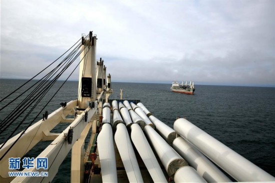 這是9月12日在楚科奇海與東西伯利亞海交界處的德朗海峽西口拍攝的“天健”輪(左)與“天樂”輪相遇的畫面。中國貨輪“天健”輪與“天樂”輪12日在北極東北航道上相遇。 新華社記者劉詩平攝