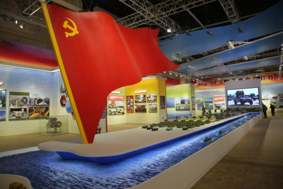 “強軍征程 揚帆遠航”主題模型展臺共有50型151件武器裝備模型,展臺前端是形似船帆的黨旗,整個展臺猶如一艘強軍號巨輪,寓意在黨的領導下,朝著建設世界一流軍隊揚帆遠航;上方平臺猶如三軍列陣、戮力向前的強軍之路,寓意在黨的指引下,改革重塑后的人民軍隊昂首闊步在強軍新征程上;武器裝備按作戰(zhàn)編組排列,寓意我軍時刻以戰(zhàn)斗姿態(tài)守護和平安寧,展現(xiàn)召之即來、來之能戰(zhàn)、戰(zhàn)之必勝的精兵勁旅形象。