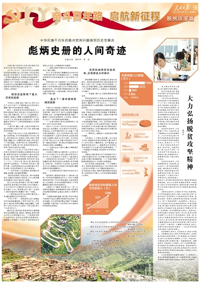 2021年2月25日,習近平總書記在全國脫貧攻堅總結表彰大會上莊嚴宣告:“經過全黨全國各族人民共同努力,在迎來中國共產黨成立一百周年的重要時刻,我國脫貧攻堅戰取得了全面勝利,現行標準下9899萬農村貧困人口全部脫貧,832個貧困縣全部摘帽,12.8萬個貧困村全部出列,區域性整體貧困得到解決,完成了消除絕對貧困的艱巨任務,創造了又一個彪炳史冊的人間奇跡!”