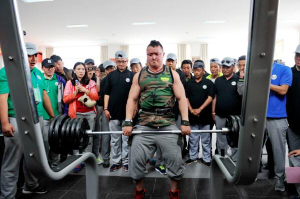 拉薩市城關區首屆健身大賽上,一位市民參加負重比賽。(2016年5月26日)。新華社記者 張汝鋒 攝