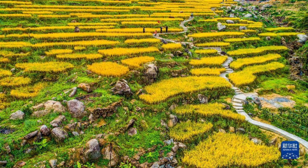 這是汕尾市陸河縣上護鎮(zhèn)洋嶺梯田豐收時節(jié)景觀(2018年11月1日攝)。新華社發(fā)(王貴 攝)