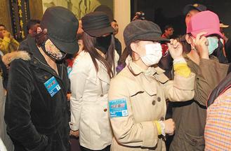 邱毅帶5位戴口罩、帽子的女子到場,媒體好奇是否有“妮可”,邱毅表示只有陳致中知道。(圖片來源:臺灣《聯合報》)