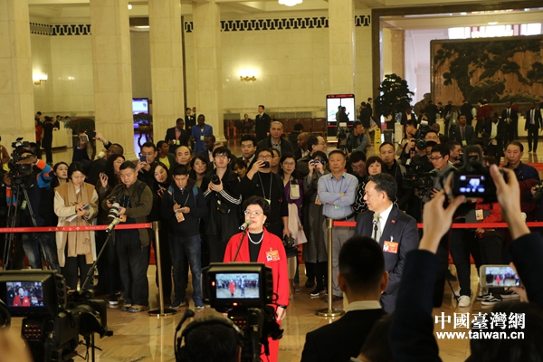 陳馮富珍委員回答記者提問。(中國臺灣網(wǎng) 雍紫薇 攝)