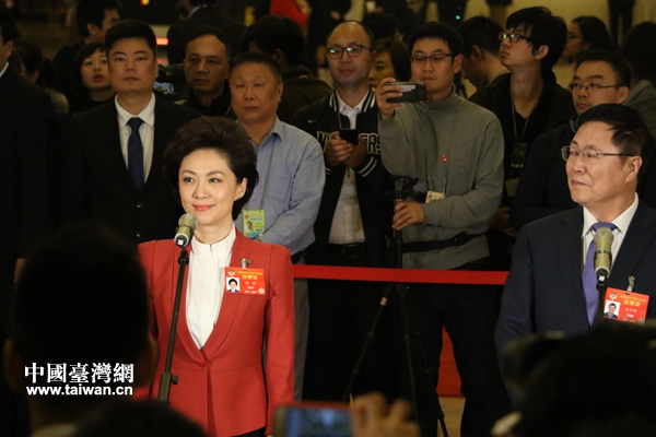 海霞委員回答記者提問。(中國臺灣網(wǎng) 雍紫薇 攝)