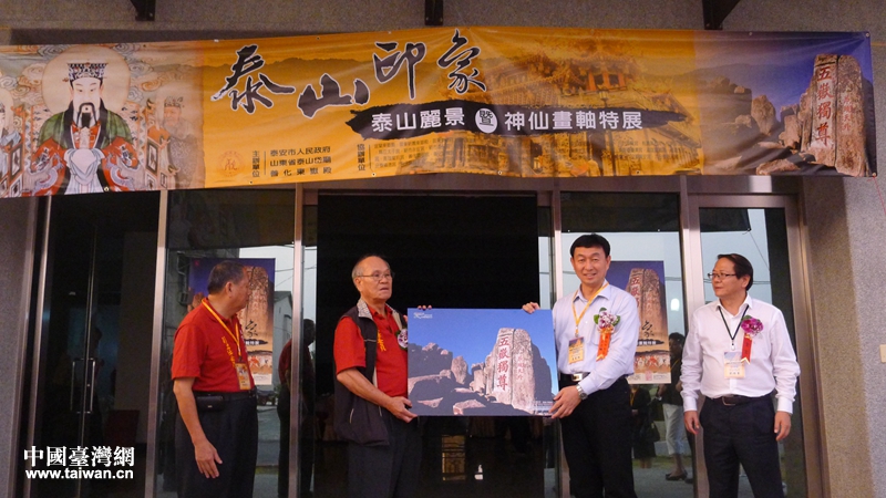 2013年10月,泰安市政府在臺南市善化區東岳殿,舉行了“泰山印象——泰山麗景特展暨泰安市人民政府惠贈泰山攝影圖片”儀式。(圖片來源:泰安市臺辦)