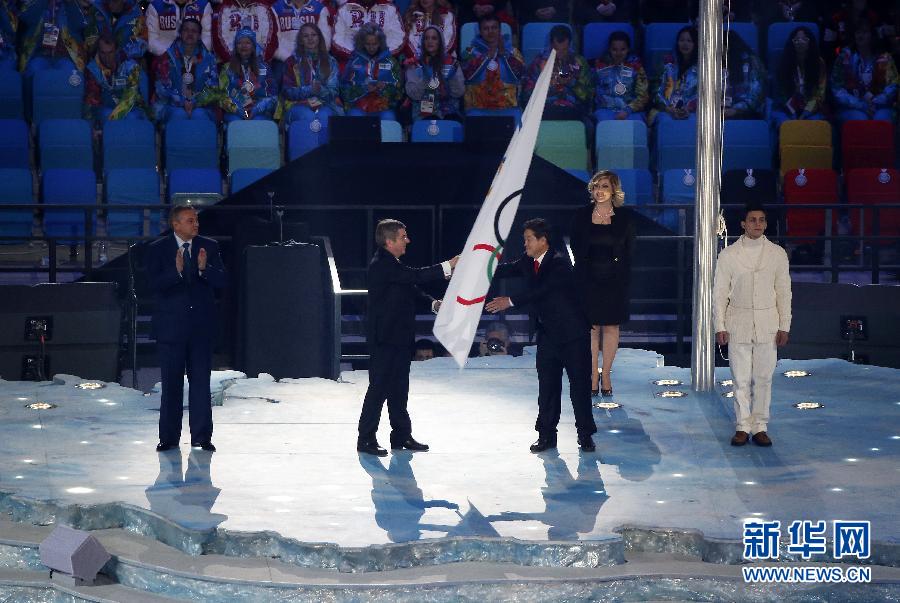 2月23日,2018年冬奧會(huì)舉辦城市平昌市市長李石萊(左三)從國際奧委會(huì)主席巴赫(左二)手中接過國際奧委會(huì)會(huì)旗。當(dāng)日,第22屆冬奧會(huì)閉幕式在菲施特奧林匹克體育場(chǎng)舉行。 新華社記者王麗莉攝