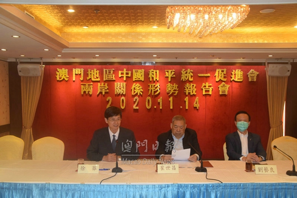 11月14日,澳門中國和平統一促進會舉行全體成員大會,順利選出新一屆領導班子,會員大會主席崔世昌、會長劉藝良、監事長陳健英蟬聯。劉藝良表示,期望會員繼續為會務發展獻計獻策,共同為祖國的統一大業早日實現而努力。澳門中國和平統一促進會同場舉辦了兩岸關系形勢報告會,由澳門中聯辦臺務部長徐莽主講。