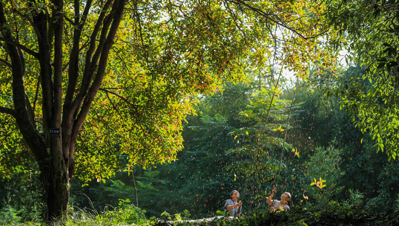 9月24日,四川省瀘州市江陽(yáng)區(qū)鄰玉街道天堂村的村民在打收桂花。