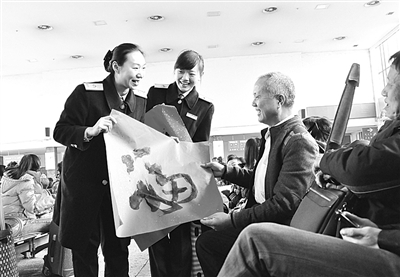日前,家在鄭州的李先生和女兒在湖南長沙火車站候車室接到了工作人員送上的“福”字,同時(shí)他還接到了一張“火車站能為您做些什么?”的調(diào)查問卷。“要是火車站能提供免費(fèi)無線網(wǎng)絡(luò)就更好了”,李先生一邊說著感謝的話,一邊在調(diào)查表上寫下了自己的意見。據(jù)悉,車站還將匯總調(diào)查問卷搜集到的問題,采取相應(yīng)措施予以解決。