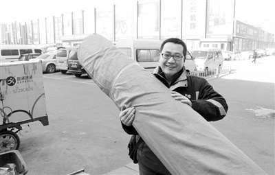 1月22日,圓通快遞員劉書杰在給家具城派送快件,這是他今天第二頻次送貨。 本報記者 李鵬翔攝