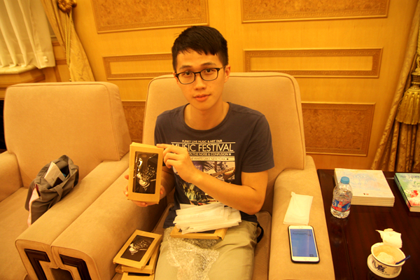 在中山公園音樂堂實(shí)習(xí)的臺(tái)灣學(xué)生為同伴精心準(zhǔn)備了禮物。(記者 陳文韜攝)