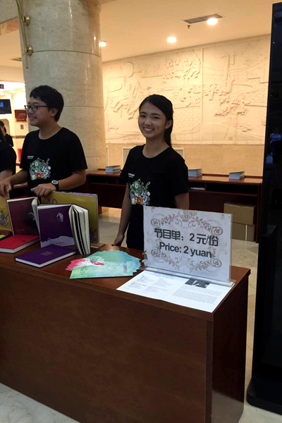臺(tái)灣學(xué)生陳玟汝在售賣節(jié)目單。