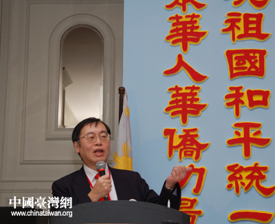 中國統一聯盟主席王津平在第三屆“中國和平統一亞洲論壇”上發表演講 (田云鵬 攝)