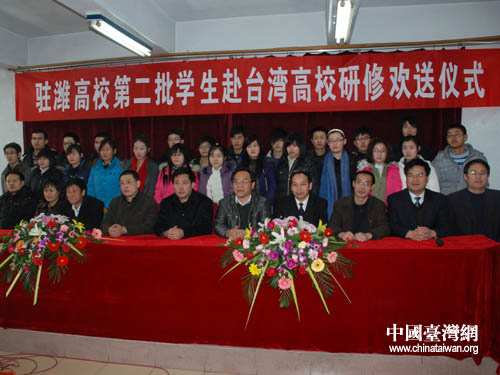 中國臺灣網1月15日濰坊消息 1月14日,第二批駐濰高校赴臺研修學生歡送儀式舉行,42名學生將在2月中下旬赴臺學習。據悉,2009年,濰坊開創山東省高等職業教育的先河,曾選派18名學生赴臺研修。隨著駐濰高校與臺灣高校交流的深入,濰坊已成為全國職業教育對臺交流最活躍的地區。