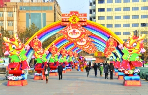 傳統習俗“九曲黃河陣”現青城街頭。 本報記者 楊錕攝