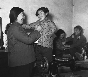 1954年春節,河北省唐山解家套農業生產合作社的小女孩陳小翠正在試穿媽媽剛做好的新衣。資料圖片