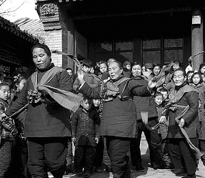 1959年春節,北京南苑人民公社的老太太們跳起了秧歌舞。資料圖片