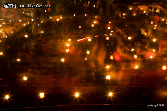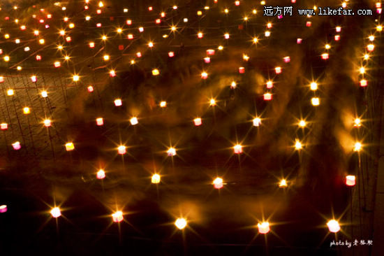 這次大老遠來一趟,自然也是要觀看一番的。只見在一塊寬敞的平地上,事先支起了排成等距離四方圖陣的柱頭,數了數,足有三百多根。中間留出彎彎曲曲的路,走過去再返回來,各有九道曲折,真可謂大城套小城,變化無窮。夜色漸漸籠罩下來,整個燈場燈光閃爍,焰火通天,鞭炮齊鳴,在傘頭領頭秧歌隊在鑼鼓家什的伴奏下唱了一首進門秧歌時,便開始祈求來年四季平安。另有些欲心想事成的男女老少或是遠道而來的游人,便手拿黃香依次進“城”,共同游轉。俗話說:“轉九曲,消災驅病,人活九十九”,因此,在這里,轉九曲可謂男女老少趨之若鶩。