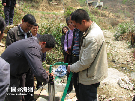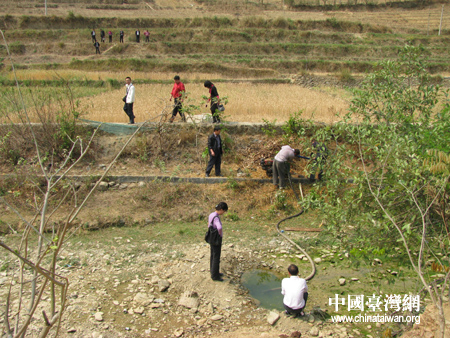 指導村民安裝潛水泵。圖片來源:黔西南州臺辦 李席虎 攝