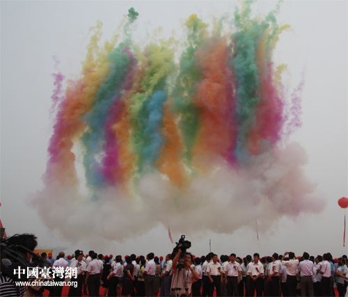 啟動儀式結束后,未散盡的彩色煙霧猶如祥云般升騰在會場上空。(中國臺灣網 張蕾 攝影)