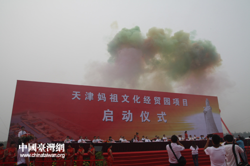 中國臺灣網7月30日天津消息 激昂的樂鼓響徹全場,舞獅舞龍的隊伍游弋其中,今天下午,天津媽祖文化經貿園項目啟動儀式在天津漢沽中心漁港隆重舉行。