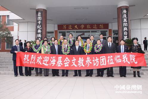 鄭州大學(xué)升達(dá)經(jīng)貿(mào)管理學(xué)院熱烈歡迎海基會文教參訪團(tuán)。圖片來源:河南省臺辦