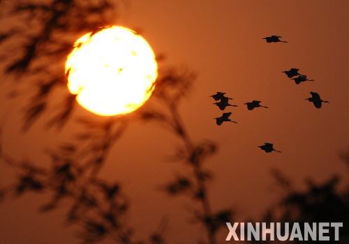 這是海南省屯昌縣濕地幾只晚歸的白鷺。新華社記者姜恩宇攝
